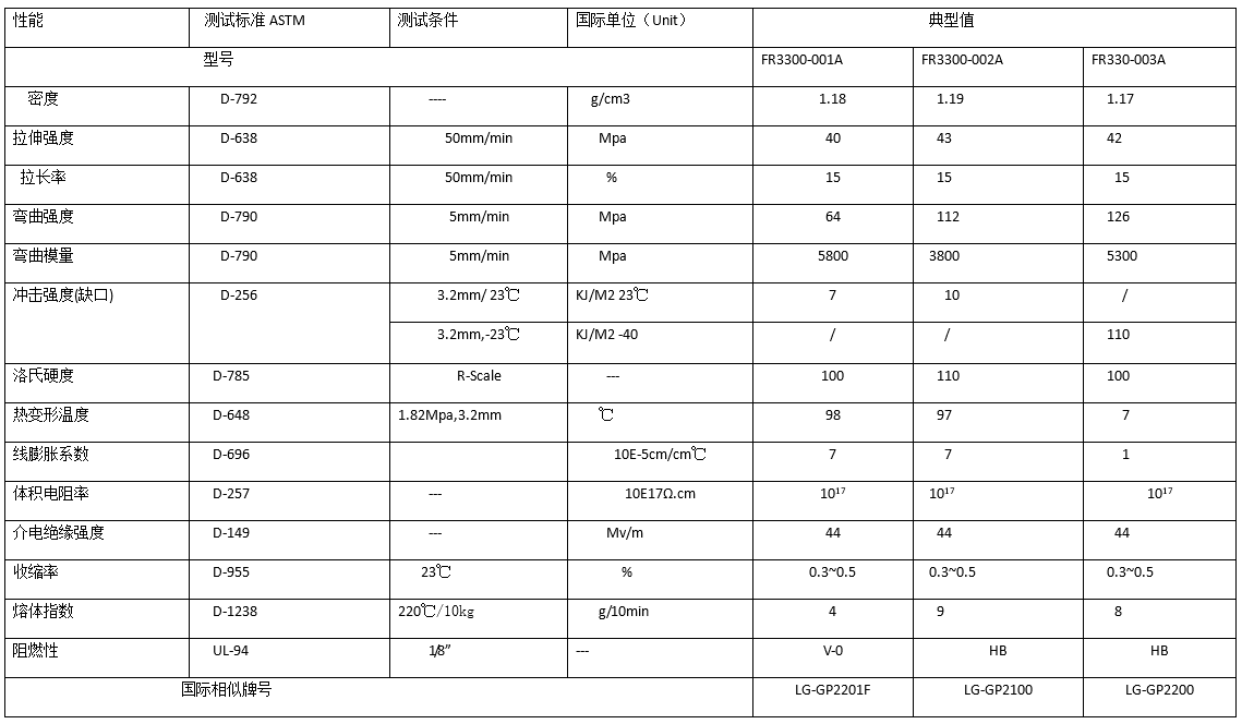 • a.基本特性  阻燃级别   耐热稳定   高刚性   流动性好   较高的耐热行    良好的韧性。